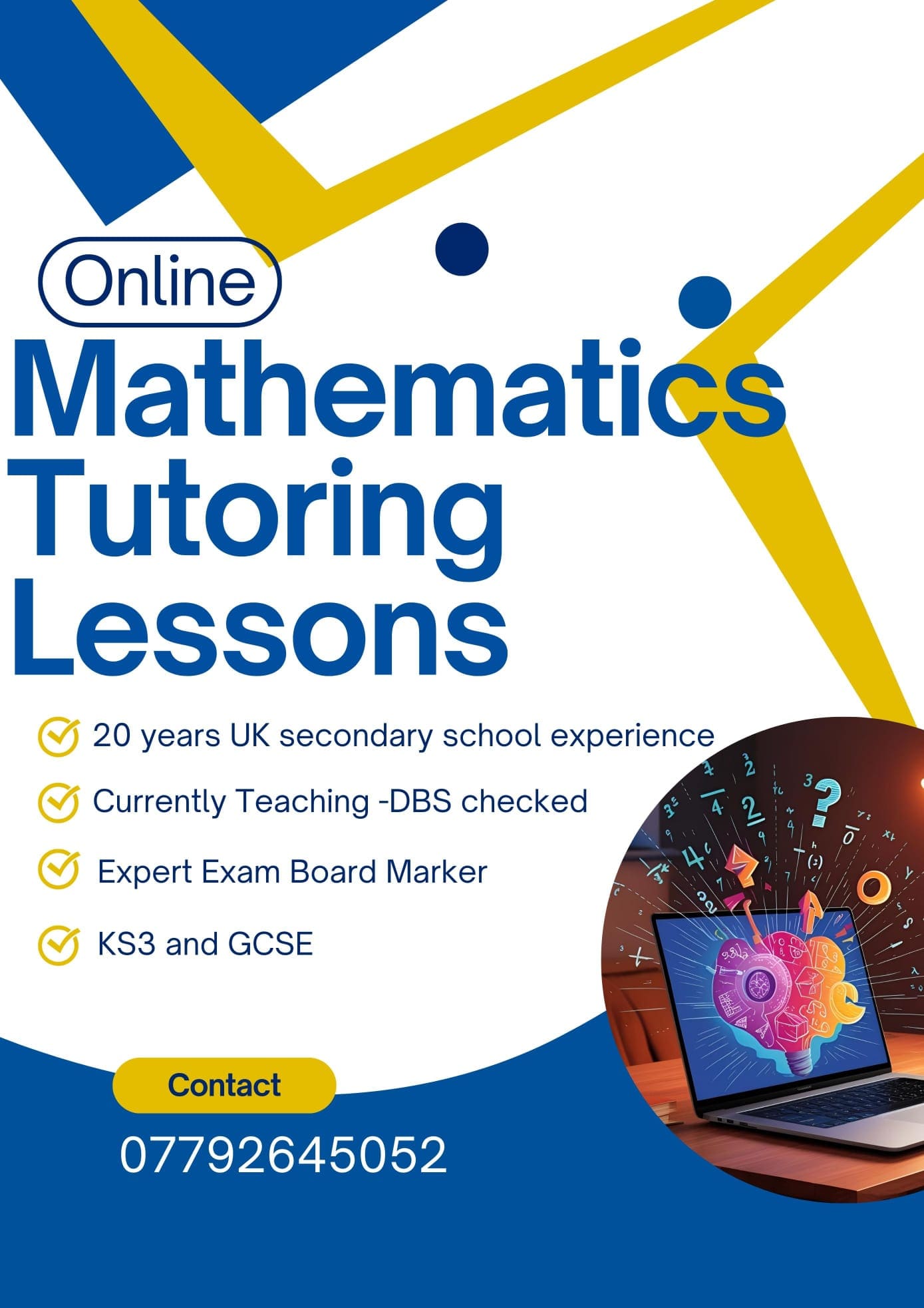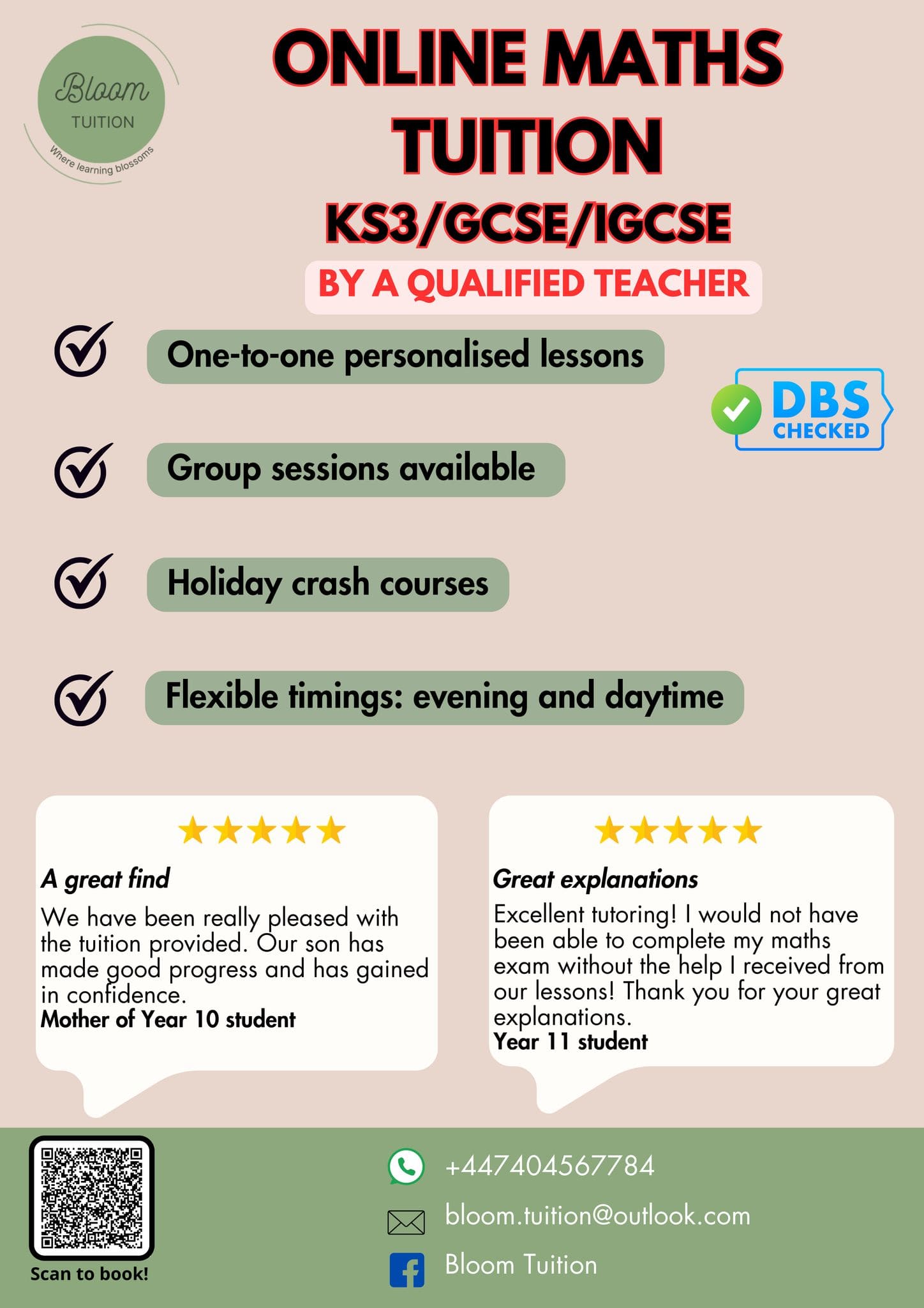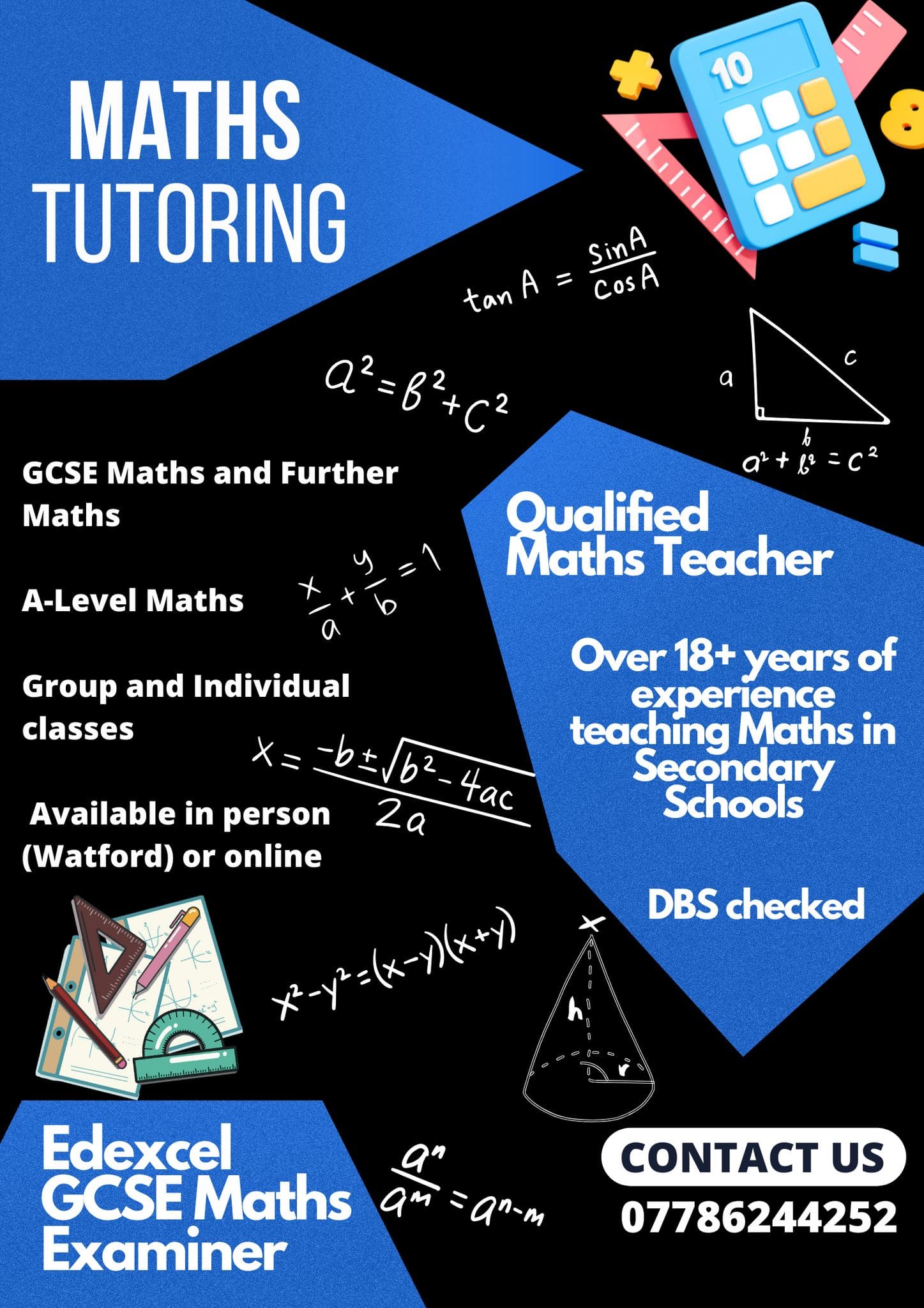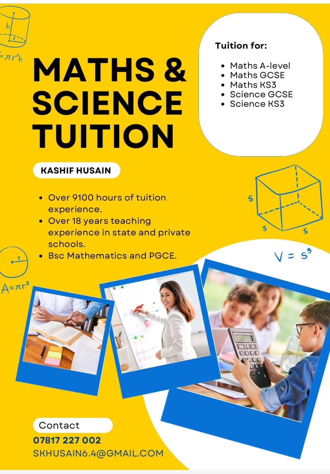 Subjects: Maths A-level, GCSE and KS3; Science KS3 and GCSE