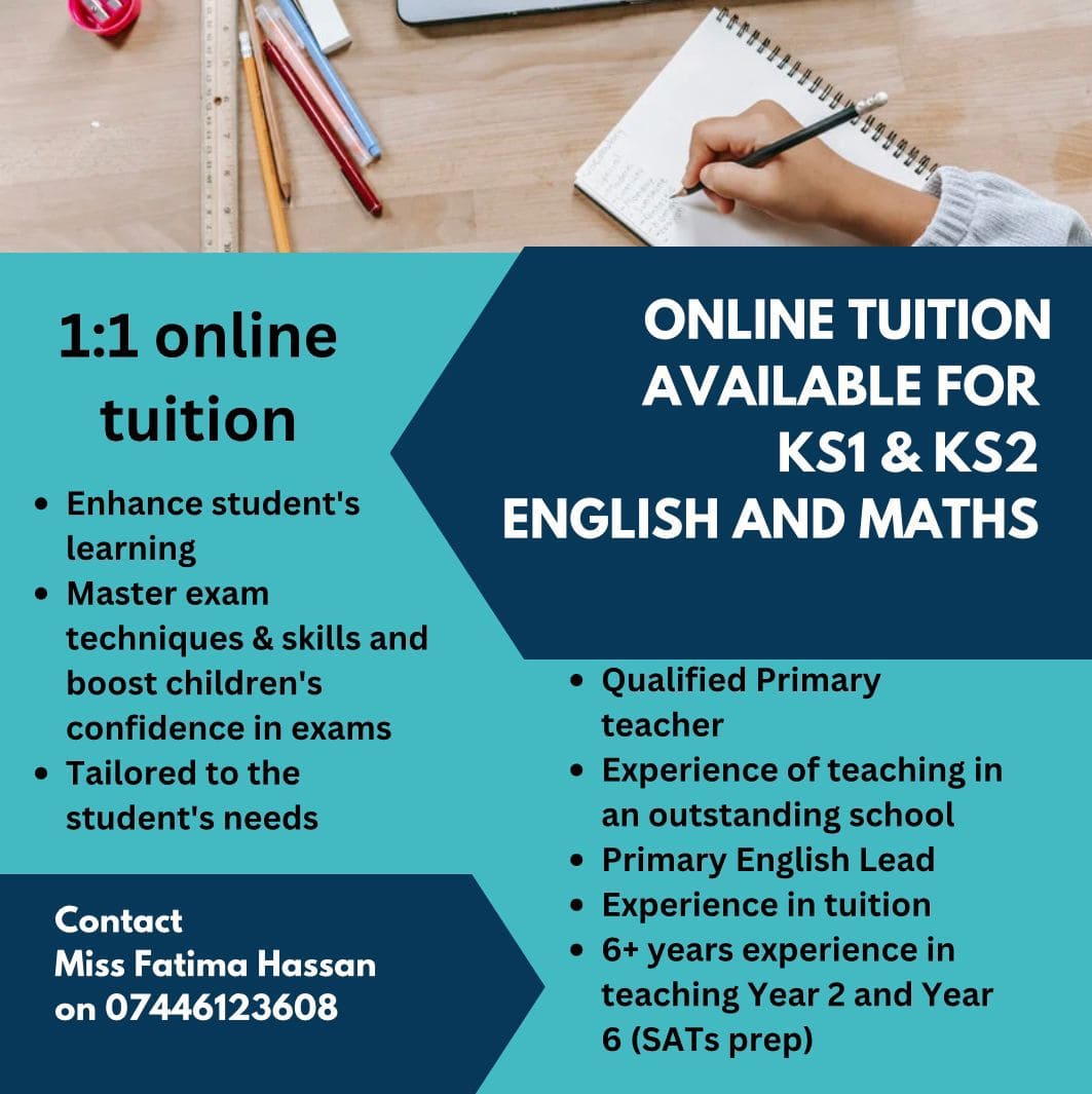 Subjects: English and Maths (able to do other primary subjects as well)