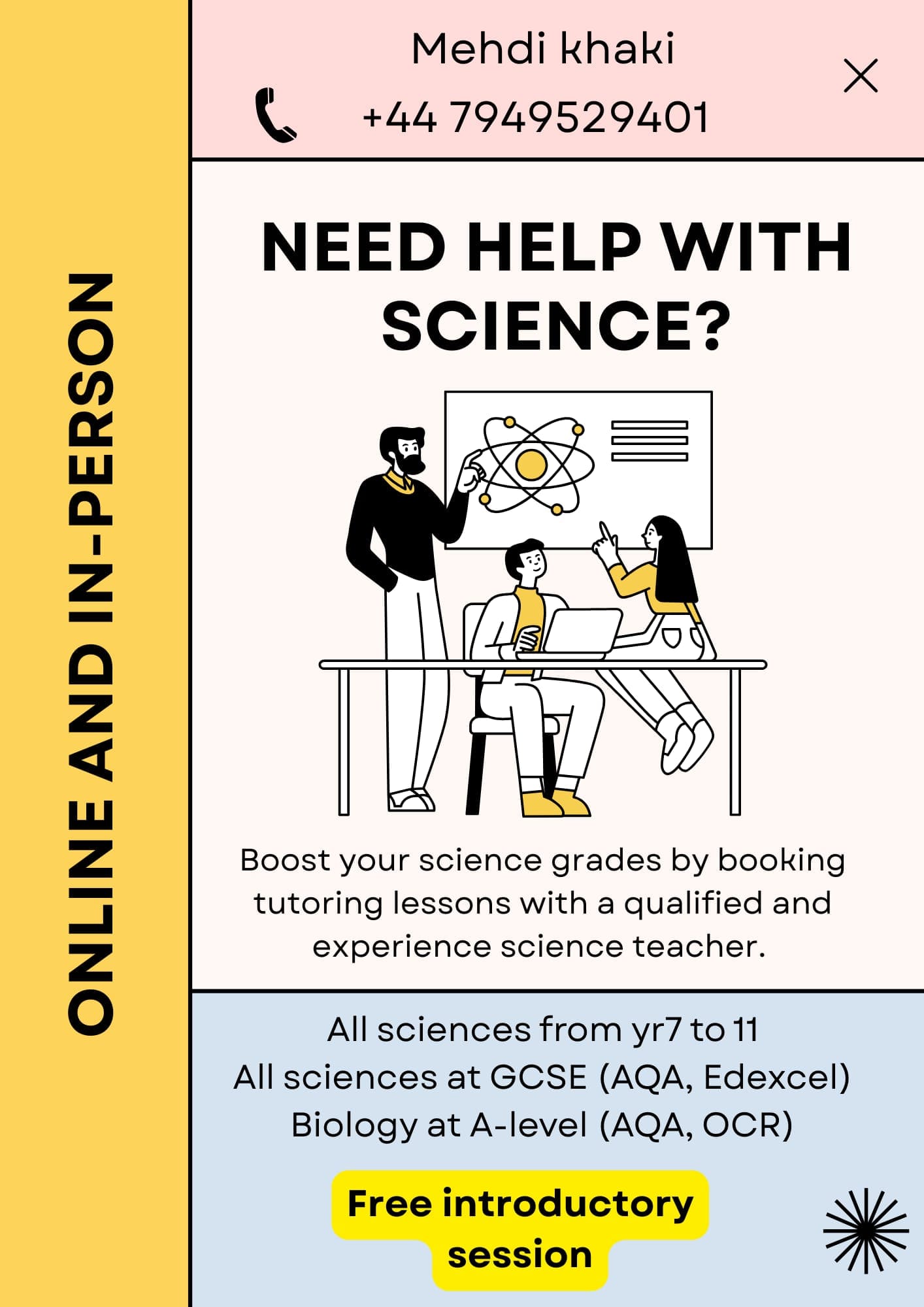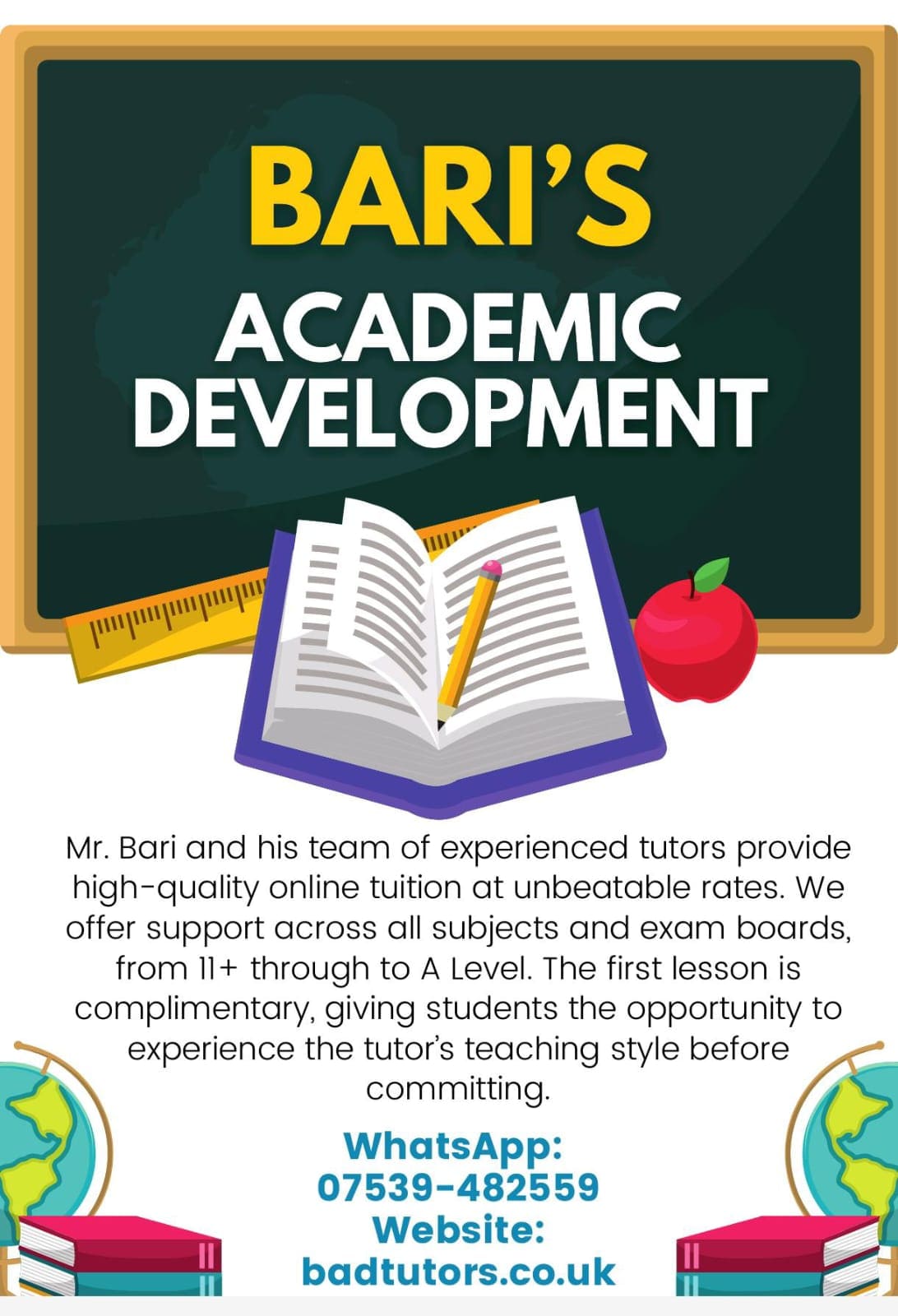 Qualifications: BSc, PGCE, ~9000 hours of tuition experience